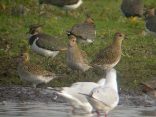 Pick of the birds this morning was a winter plumaged Dunlin foraging on the back of the spit. It was too far off for a record shot, but came much closer this afternoon, but with worsening light, so the best of an awful bunch of record shots are here: